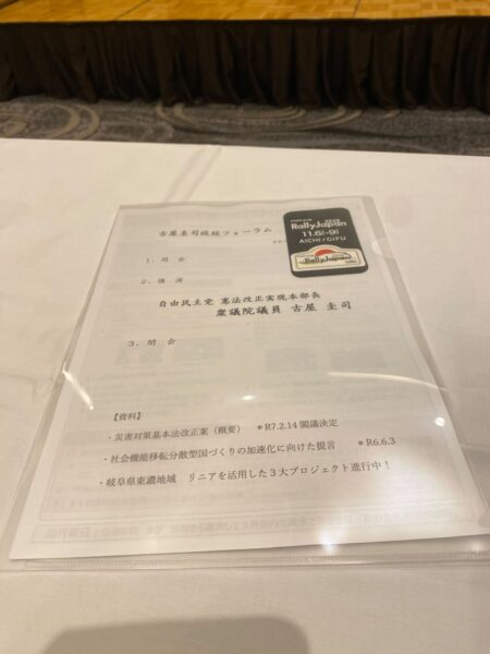トランプ大統領の関税対策、台湾有事について、拉致問題への取り組みなど、国内では災害対策、社会機能移転分散などについてご講演頂きました。